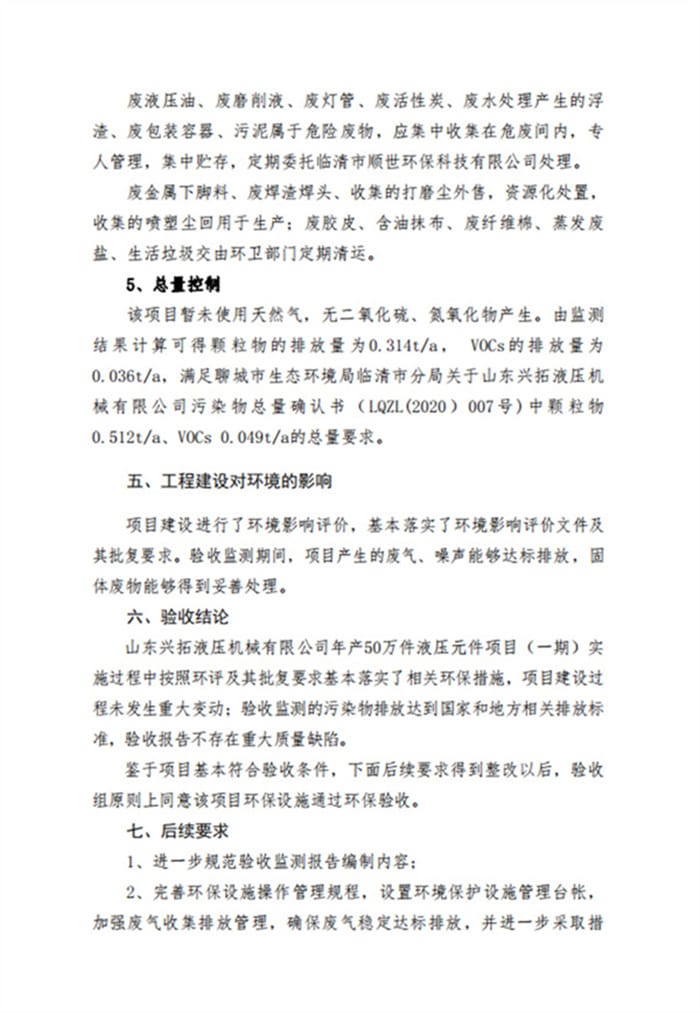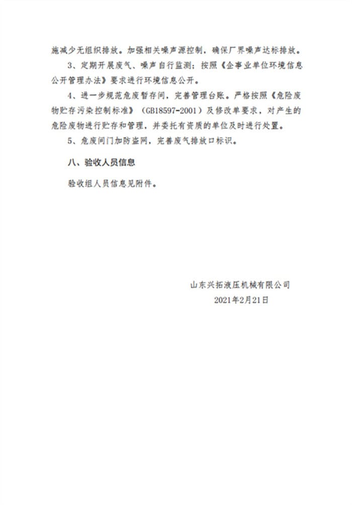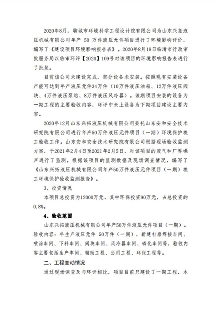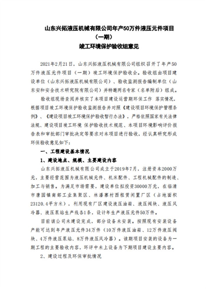山东兴拓液压机械有限公司年产50万件液压元件项目(一期)签字与意见