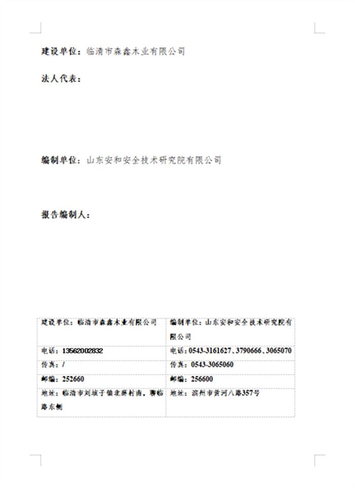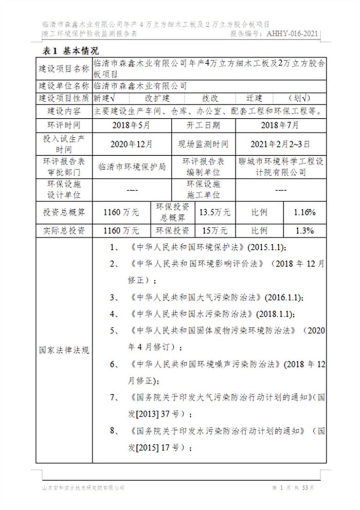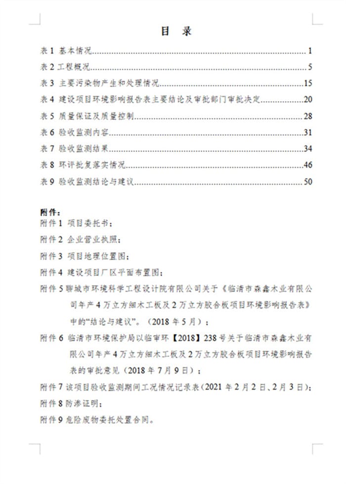 临清市森鑫木业有限公司年产4万立方细木工板及2万立方胶合板项目验收报告